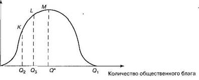 Теорема о «медианном избирателе». При симметричном распределении предпочтений относительно конкретного общественного блага, максимизация голосов избирателей достигается при ориентации на количествообгцествен-ного блага Q*, предпочтительное с точки зрения «медианного избирателя». Название теоремы связано с тем, что позиция Q* соответствует медиане политического спектра; иными словами, варианты Q< Q* и Q> Q* поддерживаются одинаковым количеством избирателей.