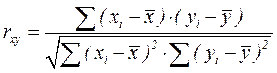 Коэффициент корреляции — параметр, который характеризует степень линейной взаимосвязи между двумя выборками, рассчитывается по формуле: