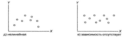 На рис.3 изображены диаграммы для величин, не являющихся линейно зависимыми. Коэффициент корреляции в этом случае равен 0, т.е. никакой линейной зависимости не существует.
