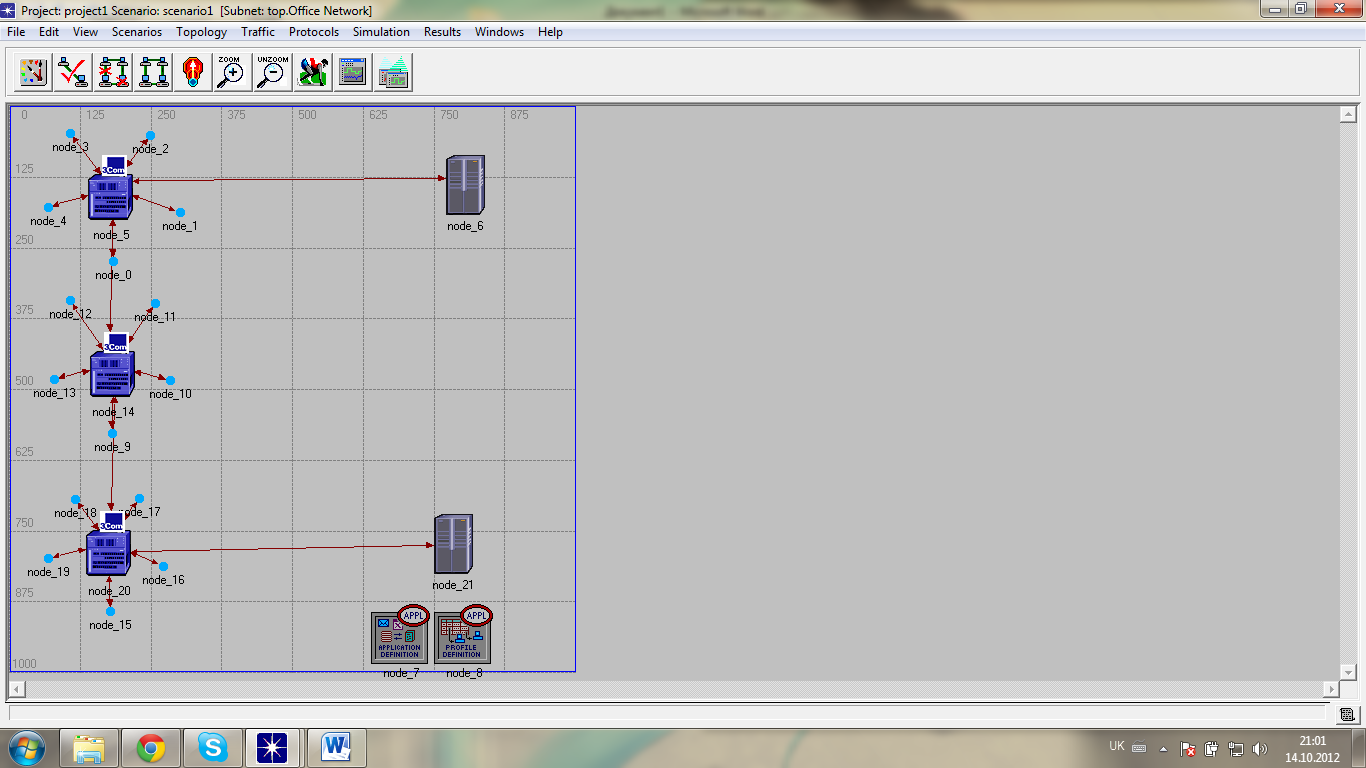 2. Скласти сценарій, за яким буде проведено перевірка та робота мережі і провести вибір мережного обладнання згідно з даними вихідного завдання (табл.1.1) та палітри Configure Palette (Object Palette);