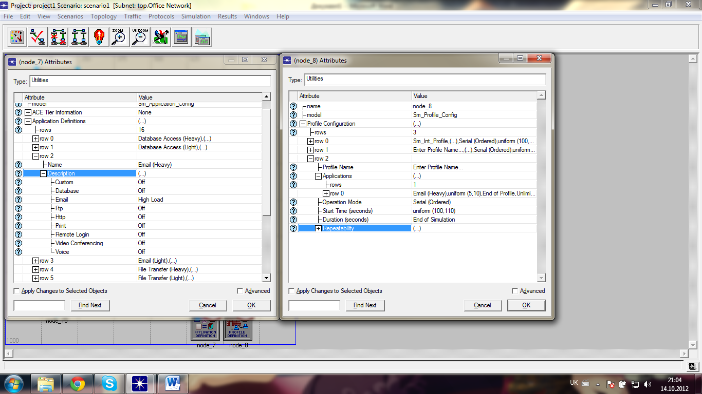 Рис 2. – Налаштування Application Definition зліва та Profile Definition справа.