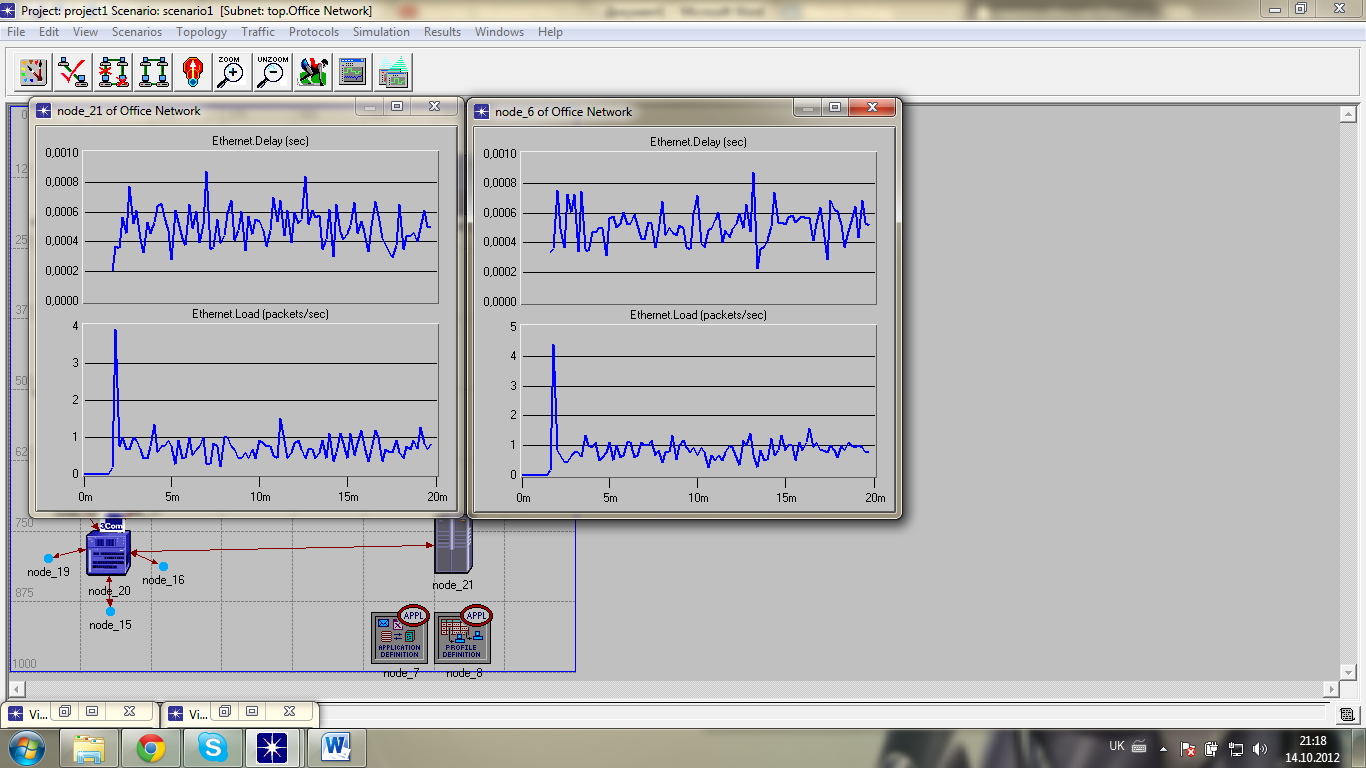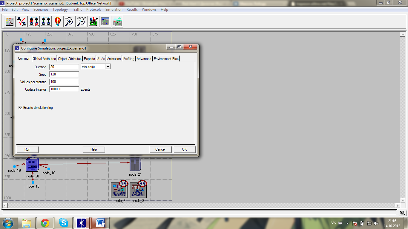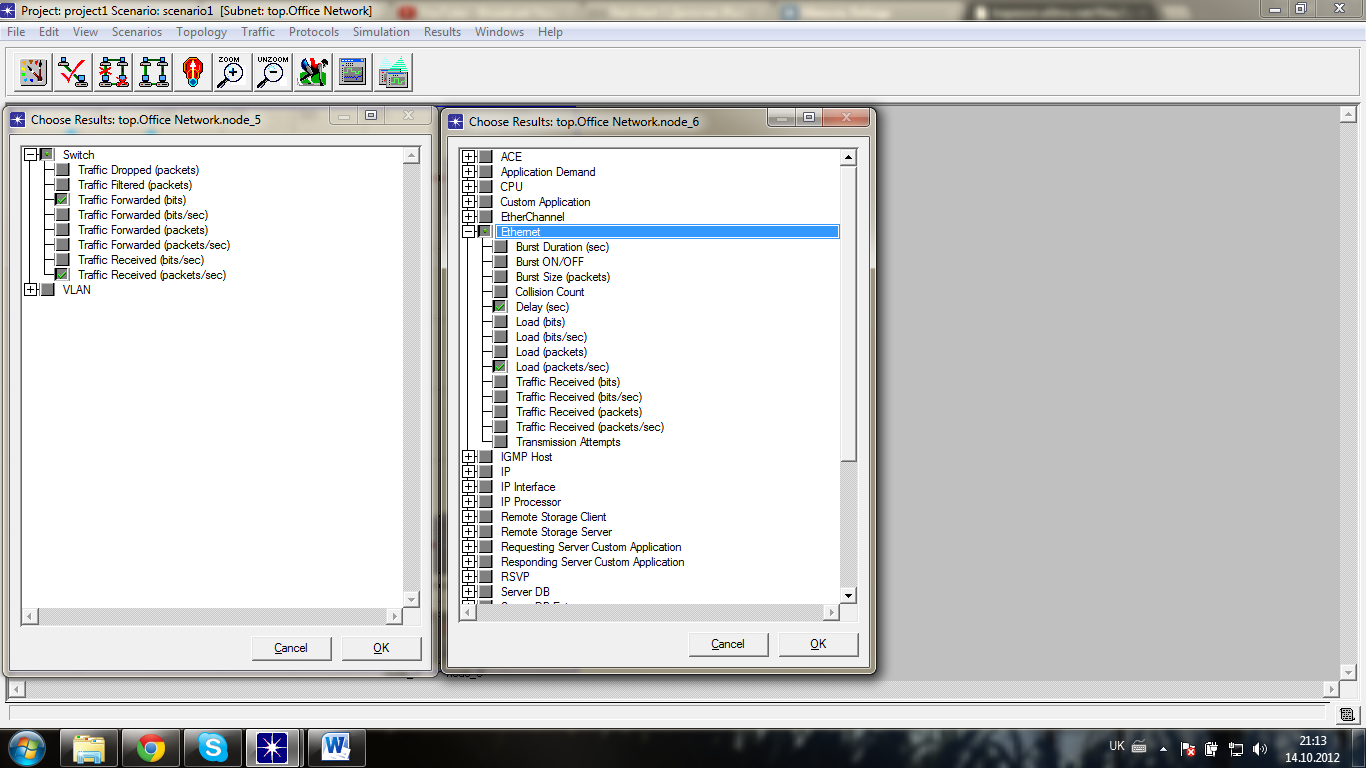 5. Запустити симуляцію мережі та зняти статистичні дані роботи мережі (тип статистики визначається даними таблиці 1.2).