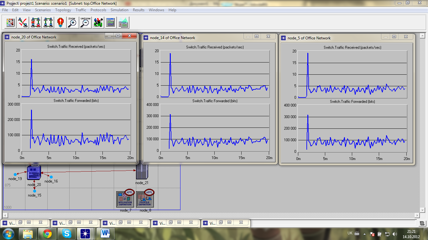 Рис 7. – Статистичні дані роботи комутаторів за досліджуваними параметрами: Traffic Received (packet/sec) Traffic Forwarded (bits).