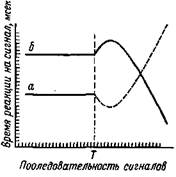 ... АААБАБАААБАБАААБАБАААБАБ... В этом новом ряду сигнал А, как и раньше, встречается вдвое чаще, чем Б. Между тем время реакции оператора при переходе к новому ряду существенно изменяется: время реакции на А и Б начинает сокращаться,