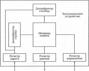 К внутренней памяти относятся ОЗУ, кэш, CMOS, РПЗУ, ПЗУ. Внутренняя память строится по единому принципу. Базовой частью ЗУ (за исключением кэш-памяти, которая имеет регистровую структуру) является матрица, в которой все ячейки памяти объединены в двухмерный массив (рис. 3.11).