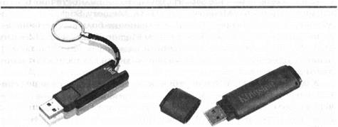 USB Flash Drive (флэш-диск, флэш-память) — носитель информации, подключаемый к ПЭВМ через стандартный разъем или концентратор USB, имеющий обычно вытянутую форму и съемный колпачок, который прикрывает разъем, индикатор обмена информацией и механический переключатель, блокирующий запись или стирание информации. Большинство накопителей USB Flash Drive выполнены в виде брелока (рис. 3.15).