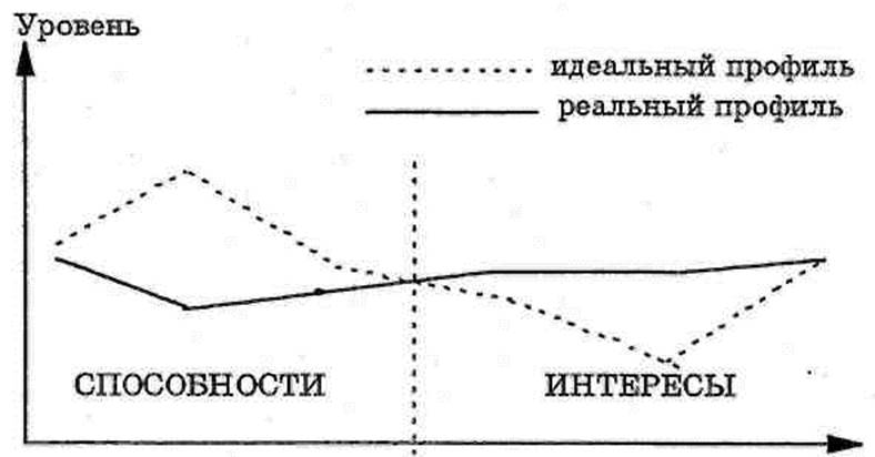 Рис. 7 Схема сравнения профилей идеального и реального исполнителя в профконсультационной диагностике