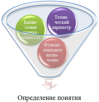 Конкретный объект (материальный или нематериальный предмет, вид деятельности, физическая величина) абстрагируется в понятие на основе одного присущего ему свойства или сочетания нескольких свойств после их формулирования в виде признака или группы признаков.