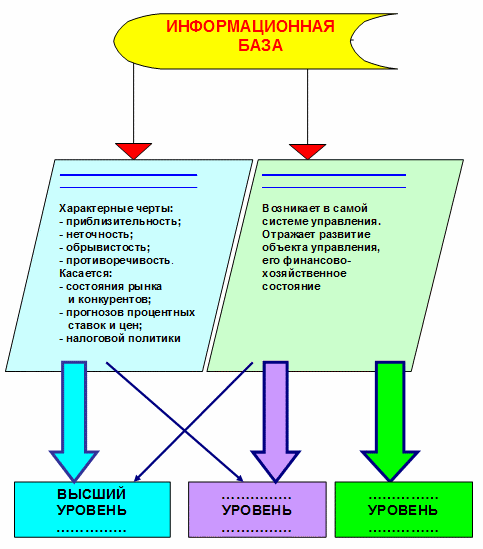 На оперативном уровне обычно принимаются структурированные решения, на тактическом — полуструктурированные, на стратегическом — неструктурированные. Чем выше уровень менеджмента, тем больше неструктурированных решений. Поэтому круг средств и методов формирования информации не одинаков для всех уровней.