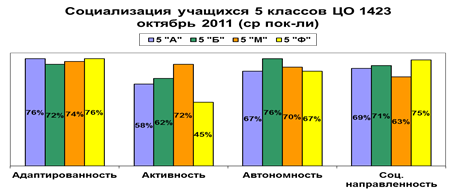 Как видим, 5 класс «М» отличается от других классов самой высокой активностью и самой низкой социальной направленностью. Это демонстрирует классному руководителю, что школьники с удовольствием проявляют свою активность и с трудом уступают друг другу, ради своего успеха. Они готовы прилагать усилия и не готовы тратить свое время на других.