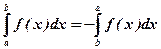 Если поменять местами пределы интегрирования, то определённый интеграл сменит знак.