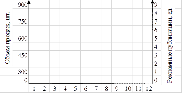 Рис. 6 Зависимость объема продаж от интенсивности рекламных публикаций