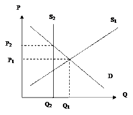 5. Предложение невоспроизводимых природных ресурсов – вследствие невозможности резко и значительно увеличить поставки на рынок невоспроизводимых природных ресурсов, эластичность их предложения считается низкоэластичным или абсолютно неэластичным (Eэ → 0).