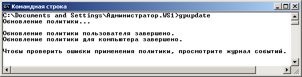 - Примените политики безопасности: в командной строке ввести команду gpupdate
