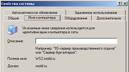 - NetBIOS-имя вашего домена (на выбор, например WORLD)