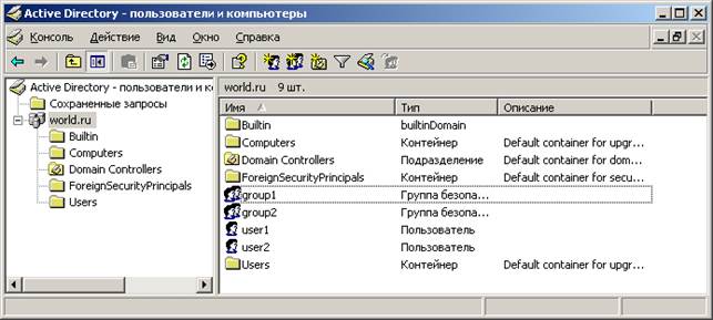 - Откройте консоль "Active Directory -пользователи и компьютеры"