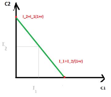 Это межвременное бюджетное ограничение, то есть на этой прямой лежат точки, показывающие, какое количество ты потребишь сейчас, а какое потом.