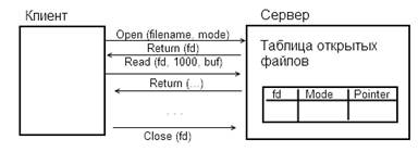 При первом вызове на открытие файла клиенту возвращается его идентификатор, используемый при дальнейших вызовах.