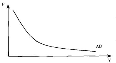 Отсюда получаем отрицательную зависимость[2] между изменением уровня цен Р и реальным доходом У, отражающую совокупный спрос на товары и услуги (AD) (см. рис.2.1).
