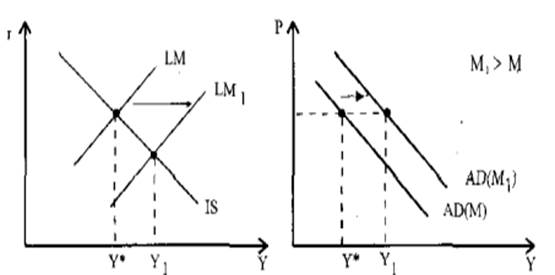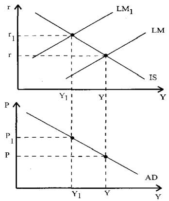 и сдвигу кривой LM влево в положение LM1.