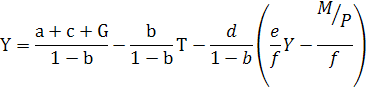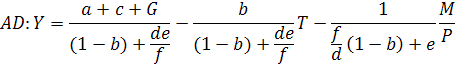 Из (2.19) можно получить выражение совокупного спроса, которое использовалось в начале этой главы, через уравнение количественной теории денег. Для этого достаточно вспомнить, что там спрос на деньги зависит только от дохода. Следовательно, коэффициент f в выражении (2.13) равен 0. Поэтому из (2.19) получаем зависимость