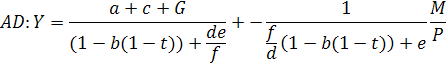 , тем выше равновесная ставка процента r и, следовательно, ниже инвестиции I и доход Y. Таким образом, зависимость между равновесным уровнем дохода Y и общим уровнем цен Р отрицательная. Формальный вывод AD из модели IS-LM включает в себя совместное решение уравнений (2.15) и (2.16) относительно Р и Y при заданных объемах государственных расходов, налогов, предложения денег и параметрах модели.
