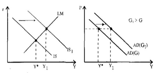 Этот случай соответствует вертикальной LM и при увеличении государственных расходов на ΔG происходит полное вытеснение инвестиций на величину ΔI=ΔG и поэтому сдвига кривой AD не происходит.