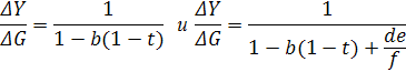 Из уравнения совокупного спроса можно видеть и эффект вытеснения инвестиций; для этого достаточно сравнить мультипликаторы государственных расходов в модели кейсианского креста и данной: