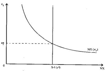 - постоянны и сальдо движения капитала (S-I) есть величина постоянная, не зависящая от реального обменного курса. Из (3.3) следует, что реальный обменный курс уравновешивает чистый экспорт и сальдо счета движения капитала (рис.3.1).