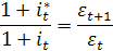 - обменный курс в следующий момент времени, тогда условие равновыгодности единицы вложений в стране и за рубежом в момент времени t будет выглядеть следующим образом: