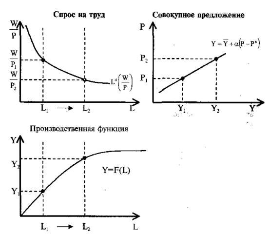 Фирмы - наниматели принимают решение о количестве нанимаемого труда после того, как они узнают фактический уровень цен Р. Спрос на труд со стороны фирм полностью определяет занятость в экономике, он зависит от реальной заработной платы