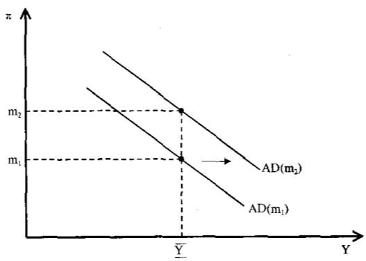Чем выше темп роста денежной массы или уровень выпуска прошлого года, тем выше положение линии AD. В устойчивом состоянии (то есть когда