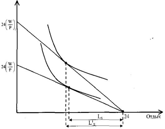 Это является следствием того, что при росте реальной зарплаты возникает эффект дохода и эффект замены, которые действуют в противоположном направлении.