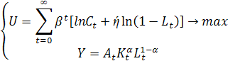 ); β - коэффициент дисконтирования, ή - коэффициент, измеряющий сравнительную ценность для индивида потребления и отдыха,