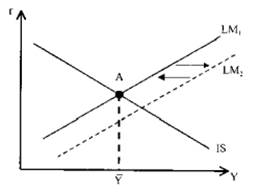 5. Согласно теории реального экономического цикла выпуск в экономике всегда на уровне естественного (т. А). В модели стимулирующая денежная политика сдвигает LM вправо. Так как выпуск оказывается выше естественного уровня, цены начинают расти, реальный запас денежных средств падает и LM возвращается в прежнее положение.