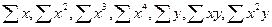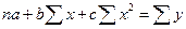 Криволинейная зависимость может принимать различное математическое выражение в виде парабол 2-го и 3-го порядка. Например: для того чтобы найти параметры a, b и с в уравнении параболы второго порядка, нужно решить систему уравнений: