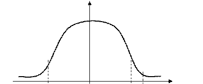 Принцип построения односторонних доверительных интервалов аналогичен изображенному на рис. 2, но заштрихованная площадка, равная α, располагается с одной стороны под кривой плотности распределения.