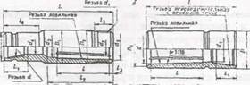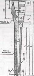 Метчики выпускаются двух типов: универсальные (рис. 2) и специальные (рис. 3). Метчики бурильные универсальные (МБУ) применяют для захвата извлекаемой колонны ввинчиванием в тело элементов бурильной колонны. Метчики специальные (замковые) МСЗ используют для захвата ввинчиванием в замковую резьбу. Метчики изготовляют по ОСТ 26-02-1274-75. Метчики указанных типов выполняются с правой и левой резьбой.