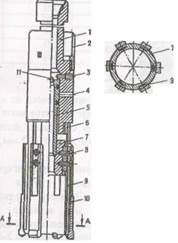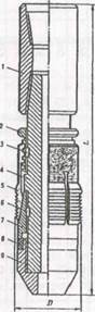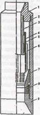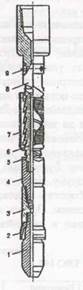 1-наконечник;2-уплотнение манжетное; 3,4-персводники; 5-кольцо расцепное, 6-хор-лус; 7-втулка захватная; 8-втулка управляющая; 9-винт спиральный