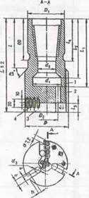 Фрезер-воронка предназначен для фрезерования верхнего конца насосно-компрессорных и бурильных труб в обсадной колонне и изготавливается по ТУ 26-12-63-78. Он представляет собой (рис. 17) стандартную воронку 2, режуще-истирающую часть 3, которая армирована дробленым ВК-8 по ГОСТ 3282-74 на припое. Дроблёные частицы ВК-8 не должны выступать над припоем. Фрезер-воронка - изделие разового использования.