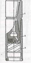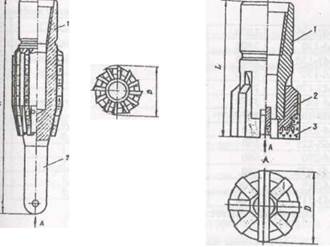Фрезер ФЗК предназначен для кольцевого фрезерования по наружному диаметру и последующего разрушения по всему сечению незакреплённых металлических предметов в обсаженной скважине. ФЗК совмещает функции кольцевых и забойных фрезеров. ФЗК (рис. 16) состоит из переводника 1, торцового фрезера 2 и кольцевого фрезера 3.