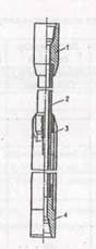 1-трубный переводник; 2-вал; 3-кожух; 4-переводник-база