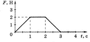 Тело движется прямолинейно под действием некоторых сил. На рисунке представлен график зависимости модуля равнодействующих этих сил от времени, направление вектора которой в течение первых трех секунд движения не изменялось. Каким было движение тела в течение четвертой секунды?