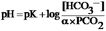 ¨ Уравнение Хендерсона–Хассельбальха рассматривает соотношение трёх переменных — рН, Pсо2, концентрации бикарбоната ([HCO3–]) — и двух констант (рК и a), где рК — обратный логарифм константы диссоциации угольной кислоты (6,1), а