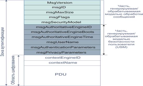 На рис. 6 показан формат сообщений SNMPv3, реализующий модель безопасности UBM (User-Based Security Model).