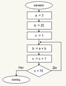 10. (4 балла) Определите значение переменной b после выполнения следующего фрагмента алгоритма, представленного в виде блок-схемы. В ответ запишите только число.