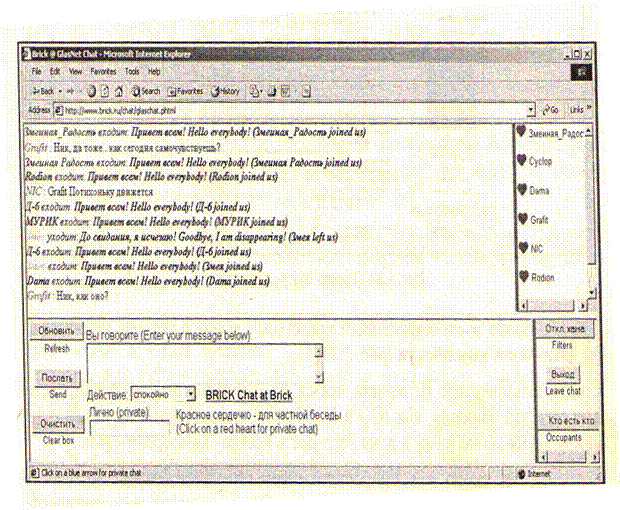 Ø Также широко распространенным средством являются так называемые чаты, chart-rooms www.brick.ru (рис. 4).