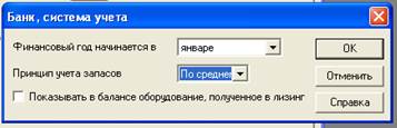 Рис. 7. Окно "Банк, система учета" из меню "Компания