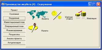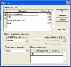 Рис.9.Окно "Налоги" из меню "Окружение"Закладка Инвестиционный план