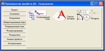 Рис. 10. Окно "Инвестиционный план" из основного меню
